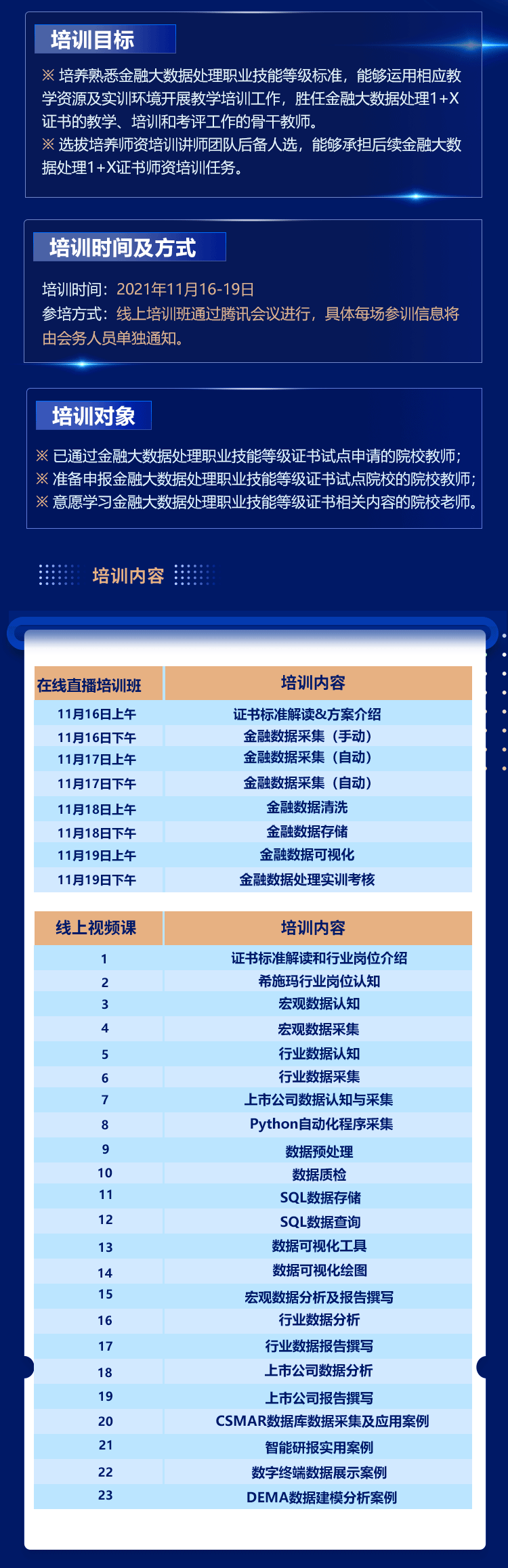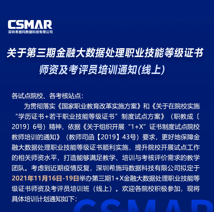【线上】关于第三期金融大数据处理职业技能等级证书师资及考评员培训通知