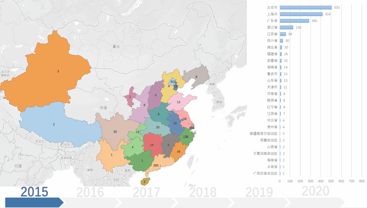 图1  我国2015-2020年金融科技公司开展及分布情况