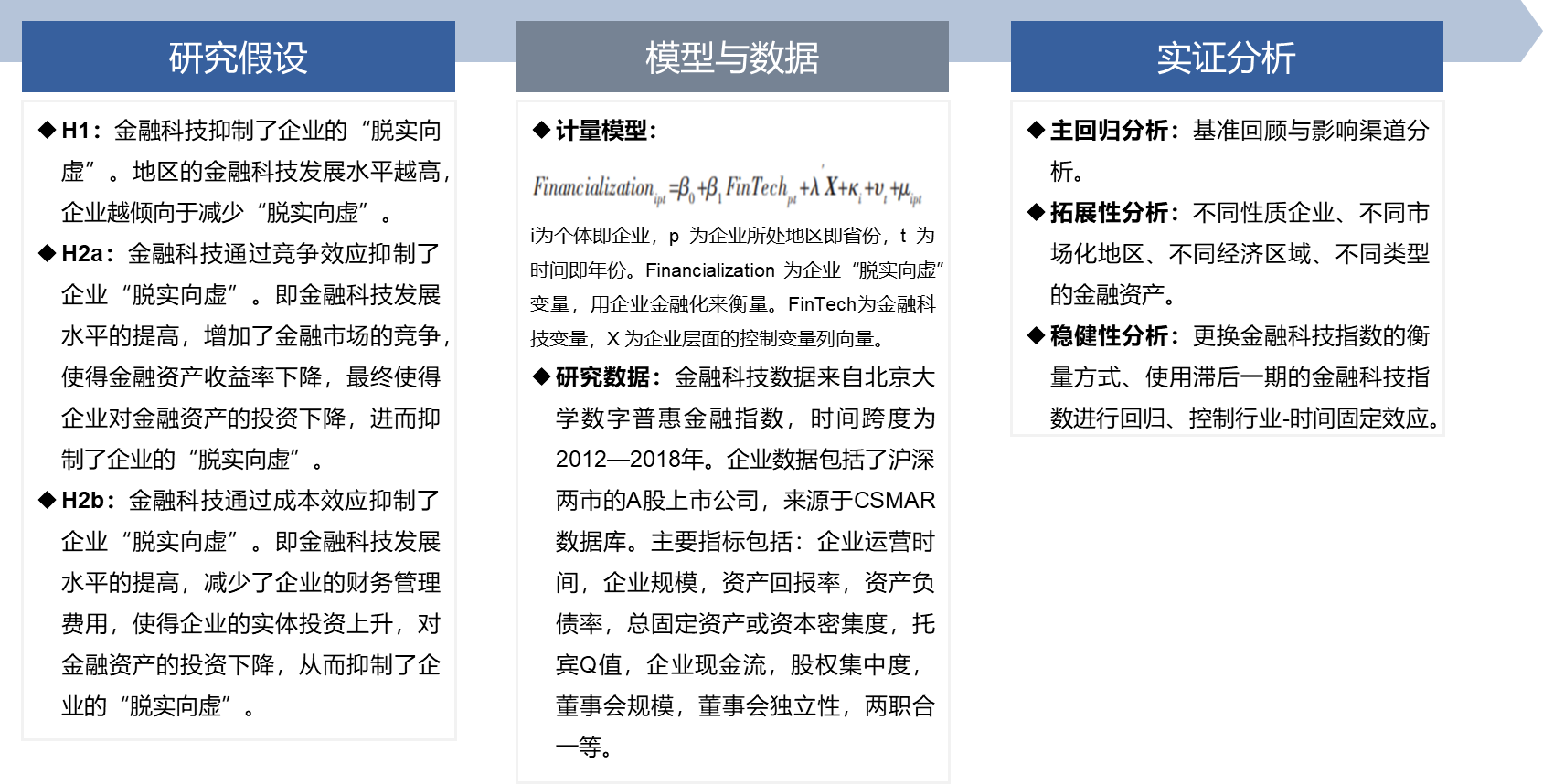 基于上述模型,文章展开了实证分析,包括主回归分析、拓展性分析以及稳健性分析。