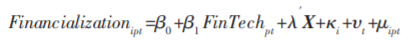 i为个体即企业,p 为企业所处地区即省份,t 为时间即年份。Financialization 为企业“脱实向虚”变量,用企业金融化来衡量。FinTech为金融科技变量,X 为企业层面的控制变量列向量。