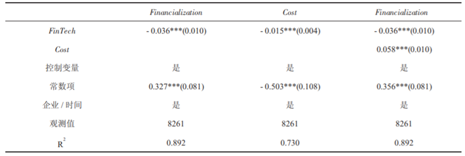 H2b:金融科技顺利获得成本效应抑制了企业“脱实向虚”。即金融科技开展水平的提高,减少了企业的财务管理费用,使得企业的实体投资上升,对金融资产的投资下降,从而抑制了企业的“脱实向虚”。