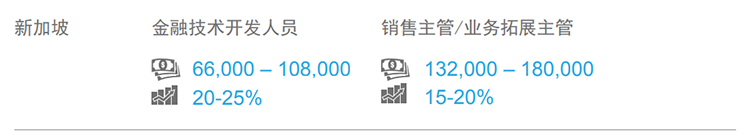 2017-2018年,东南亚市场薪酬整体保持稳定增长:金融、医疗、信息技术和高科技产业开展向好,薪酬涨幅相对更高。从地区看,新加坡薪酬的薪酬涨幅水平相对较低,跳槽涨幅在10-15%。(文中部分数据是北京知名猎头公司欧付宝欧付国际专家顾问的分析预测,供企业HR和猎头参考)